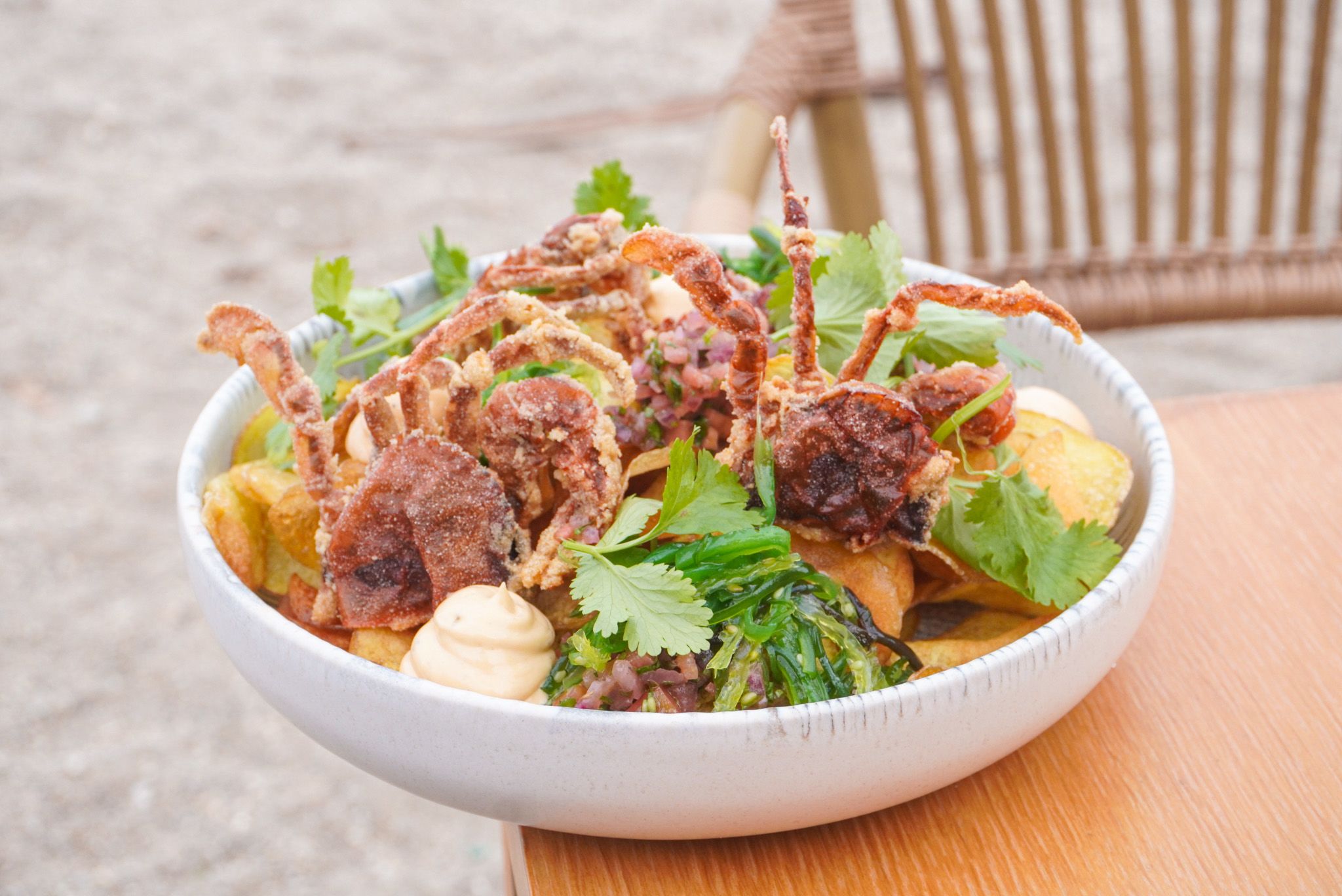 Uno de los platos nuevos que podrán disfrutar los clientes es el cangrejo de concha blanda frito con chips y mayonesa nikkē-peruana. El secreto está en el producto: un cangrejo potente, sabroso, que se fríe en su punto para mantener el interior jugoso. Acompañado de patata agria crujiente y mayonesas especiadas que hacen de hilo conductor. “Es un plato canalla que gusta, porque es directo y está bueno de verdad”.